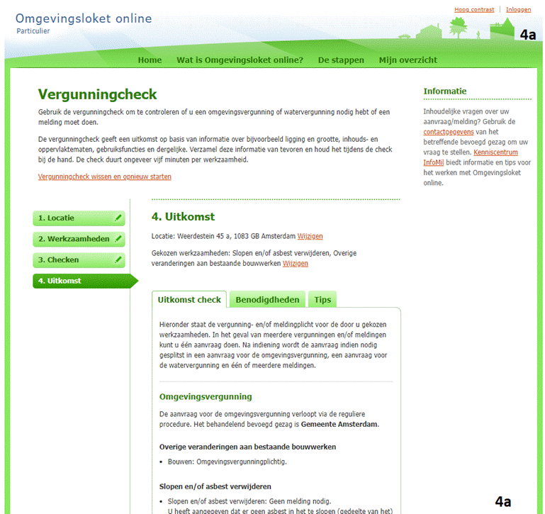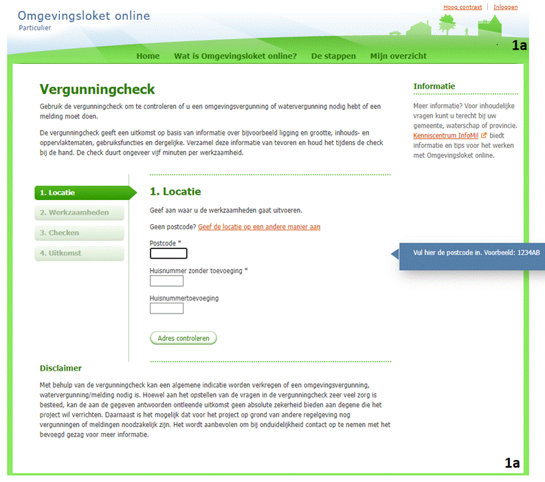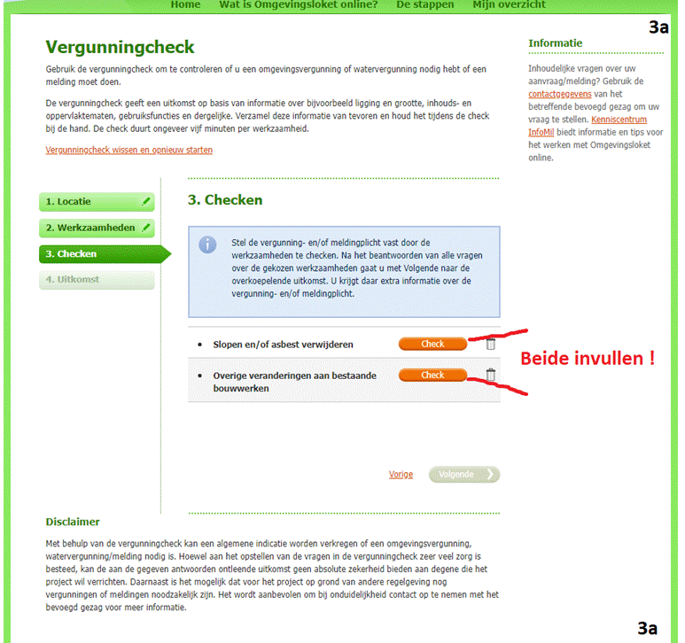Uitleg hoe en wat te doen op de Vergunningcheck-site: