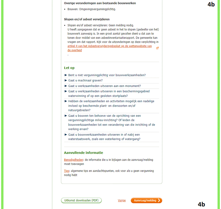 Als voorbeeld is de uitleg, hoe en wat te doen op de Vergunningcheck-site, te zien bij ‘Uitleg hoe en wat te doen op de Vergunningcheck-site’, direct onder uitleg ‘aanvulling constructieberekening’.